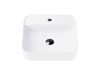 Corsan countertop washbasin, square, 395x395x145 mm, with tap hole and white click-clack plug