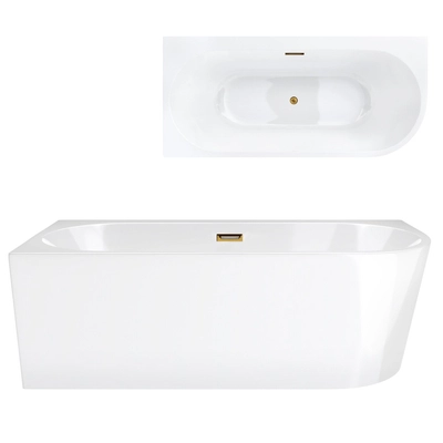 Corsan MONO wall-mounted freestanding bathtub 150 x 75 cm with wide edge click-clack plug Gold