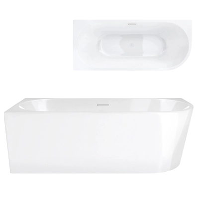 Corsan MONO wall-mounted freestanding bathtub 150 x 74 cm click-clack plug White