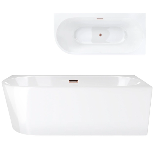 Corsan INTERO freestanding corner bathtub 160 x 74 Right-hand installation click-clack plug Copper / Rose Gold