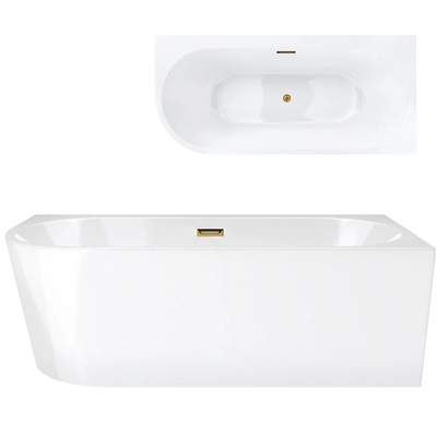 Corsan INTERO freestanding corner bathtub 160 x 74 Left-hand installation click-clack plug Gold