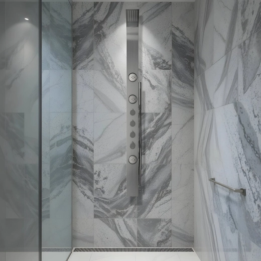 Corsan LED CASCADE Duschpaneel Thermostat Silber LED Regendusche