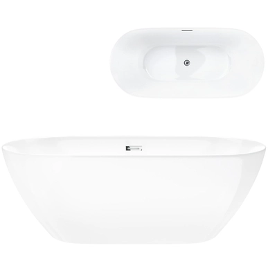 Corsan OLVENA freistehende Badewanne 148,5 x 74,5 cm Klick-Klack-Stöpsel Chrom