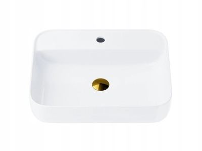 Corsan countertop washbasin, square, 395x395x145 mm, with tap hole and black click-clack plug