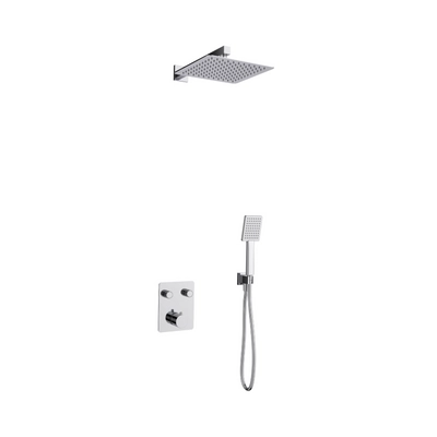 Recessed shower set ANGO Z02TCH, rain showerhead 25cm, thermostatic mixer, shower hose, chrome