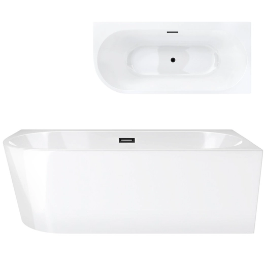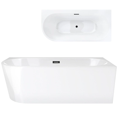 Corsan INTERO freestanding corner bathtub SLIM 150 x 75 Left-hand installation click-clack plug Black