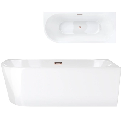 Corsan INTERO freestanding corner bathtub 160 x 74 Left-hand installation click-clack plug Copper / Rose Gold
