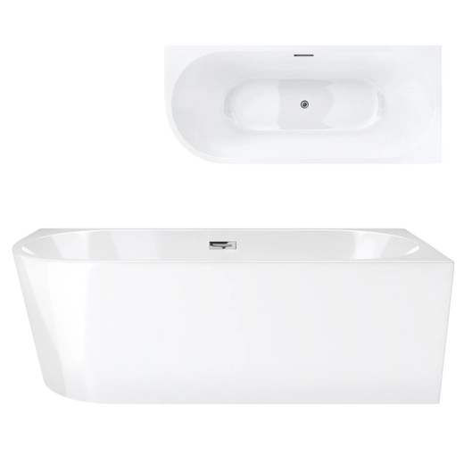 Corsan INTERO freistehende Eckbadewanne SLIM 150 x 75 Linksmontage Klick-Klack-Stöpsel Weiß