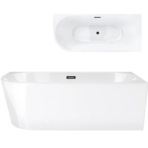 Corsan INTERO freistehende Eckbadewanne SLIM 150 x 75 Linksmontage Klick-Klack-Stöpsel Schwarz