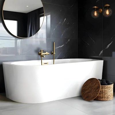 Corsan INTERO freistehende Eckbadewanne 170 x 73 Linksmontage Klick-Klack-Stöpsel Golden