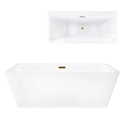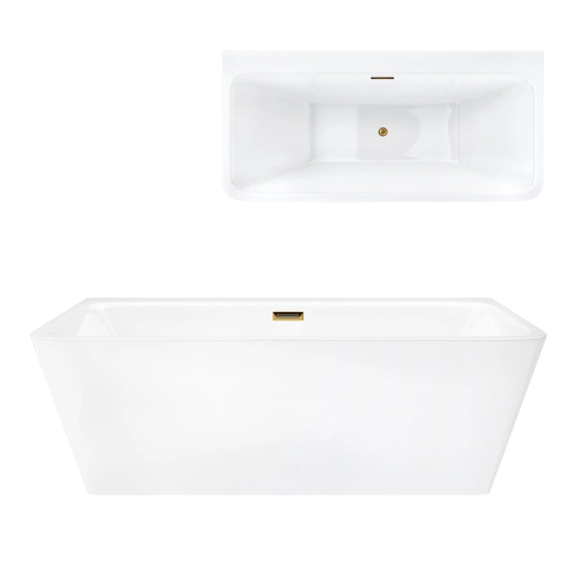 Corsan ISEO Wand-Freistehende Badewanne 160 x 74 cm mit breitem Rand Klick-Klack-Stöpsel Golden
